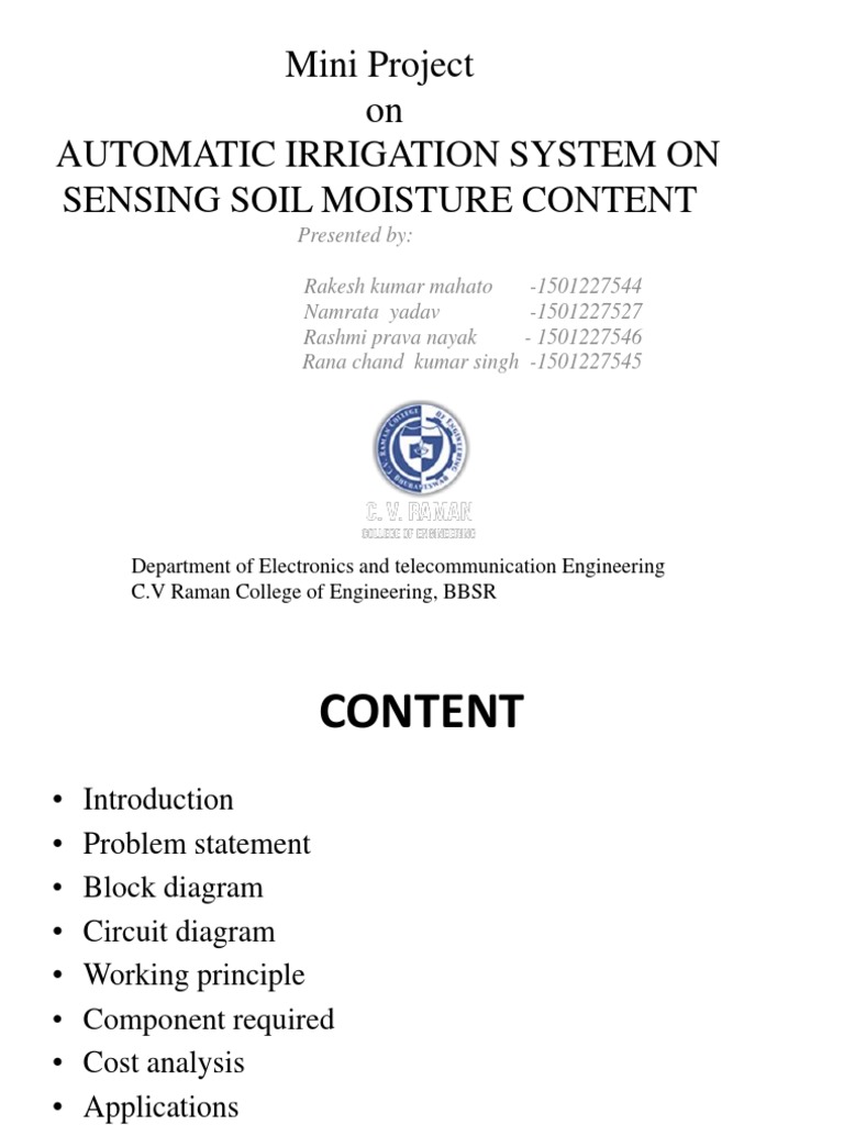 Automatic Irrigation System Project Report Project Report On Automatic Irrigation System Using Microcontroller in this article, we will discuss a project named smart irrigation system using arduino uno. The project implements an automatic irrigation system using soil. automatic irrigation system project report. here we are building a iot based irrigation system using esp8266 nodemcu module and dht11 sensor. It will not only automatically. Project Report On Automatic Irrigation System Using Microcontroller.